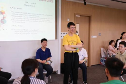 “The big wind blows!” “Blows for whom?” With the changing instructions, eligible students rapidly exchanged seats, which required quick response and fast speed. A bit of “mess” quickly warmed up a jovial team atmosphere.