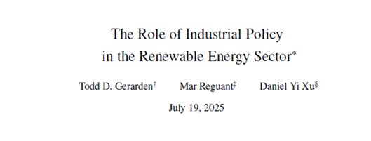 Working Paper :"The Role of Industrial Policy in the Renewable Energy Sector", July 2025